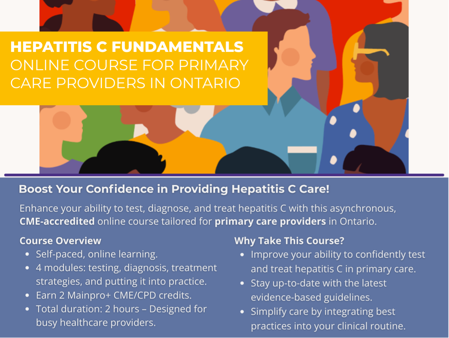 CATIE’s Hepatitis C Treatment course aims to develop in-depth knowledge on the treatment of hepatitis C for frontline service providers working with clients who have hepatitis C or are at risk for hepatitis C.